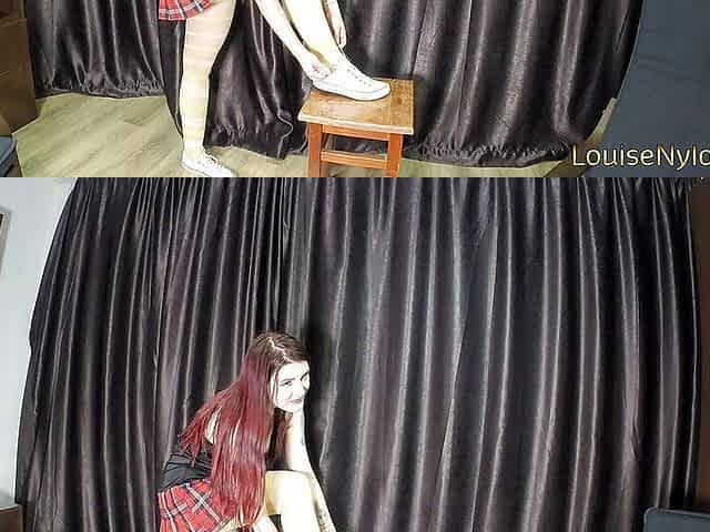 Posing in miniskirt, pantyhose and converse