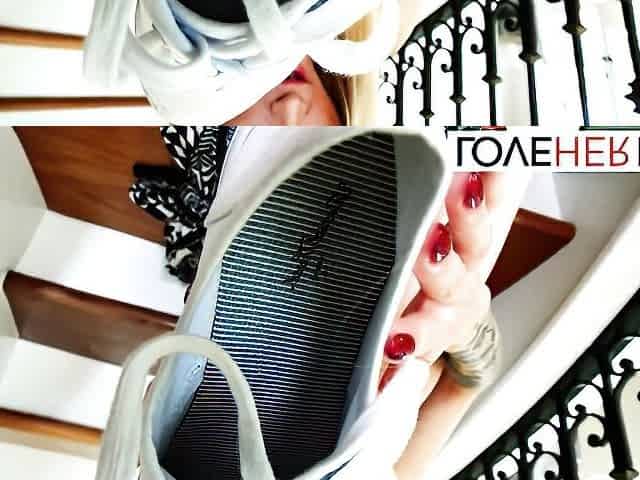 Hot Legs Tease And Striptease In Short Costume And Hose