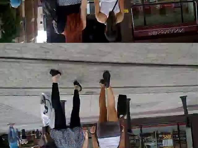 G-string upskirt footage of a chick wearing mini skirt