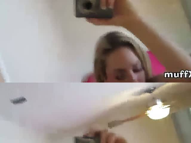 Sexy picked up blonde fucked in front of the mirror