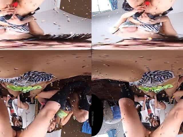 While My Housekeeper Girlfriend Is Washing Dishes, I Fuck Her Mistress in the Mouth