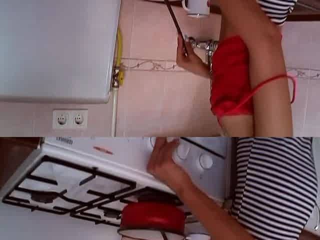 sole licking slave of missy in kitchen while cooking