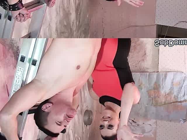 Mistresse put her serf on her knees and milked his knob to the final drop BadGirlandBadBoy