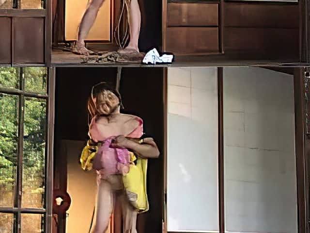 Lesbian mistress ties up her slave and strings her up to to