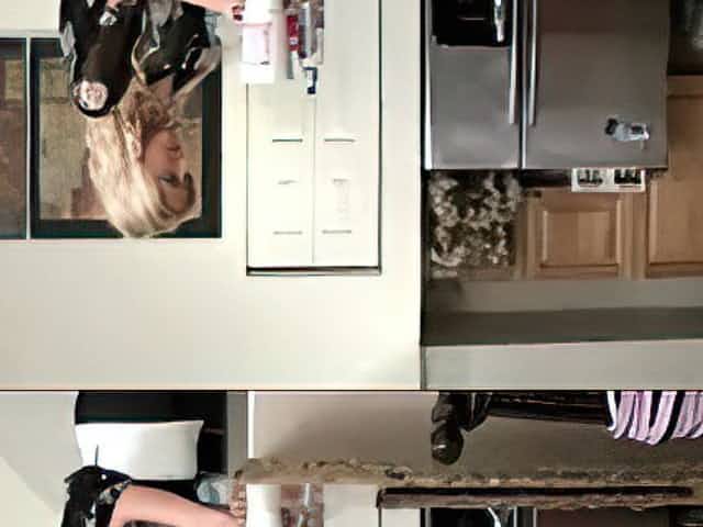 Lesbian Slave Cleans kitchen For Two Mistresses