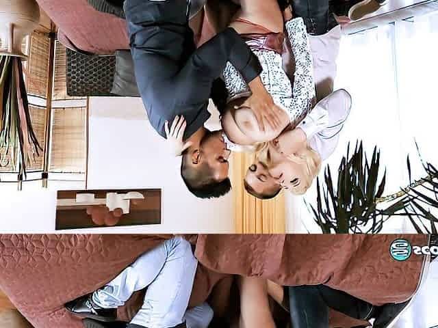 Interracial MMF threesome with a naughty blonde - Kenna James