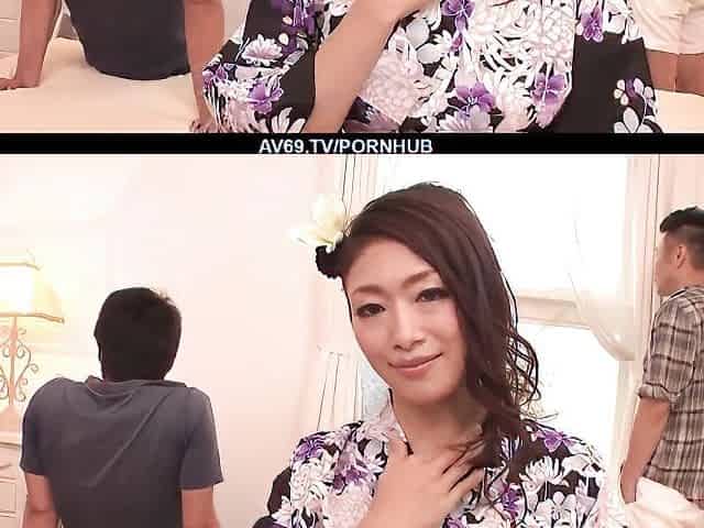 Japanese Mature get Double Creampie by two Young Guys in MMF
