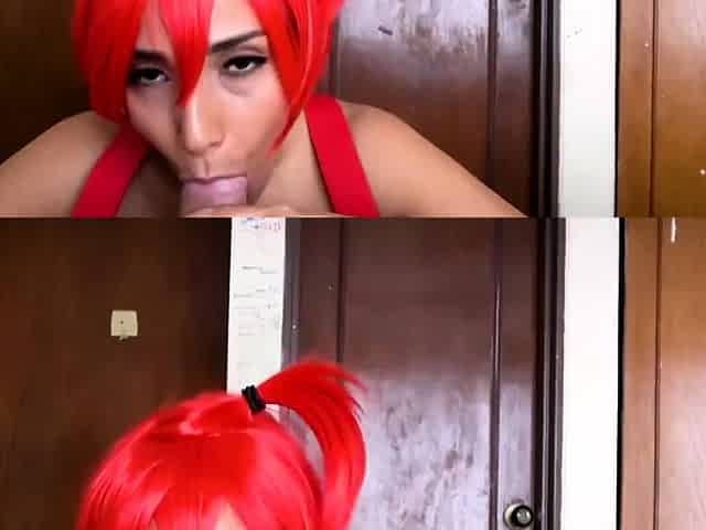 Redhead BBW with Big Boobs Blowjob Tittyjob Facial