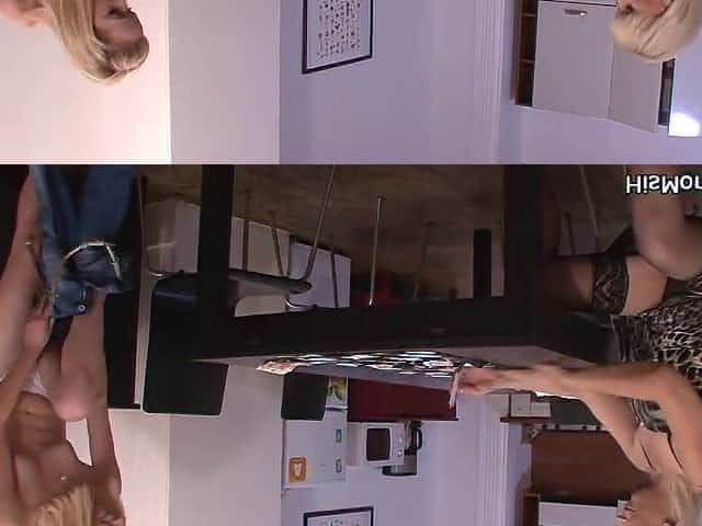 He finds his brunette gf and mom licking