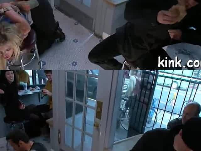 Two construction workers double penetrate the blonde in fishnet stockings in an anal threesome