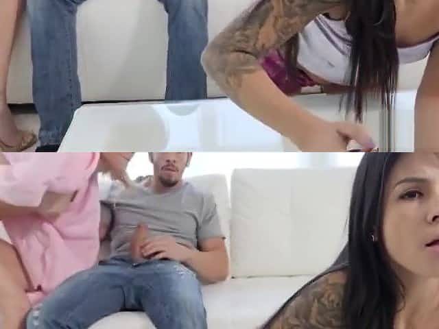 Angel Wick and Anie Darling fucking behind the guy's back