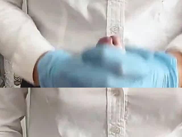 The doctor screwed the nurse on the table in the clinic. Cum in throat