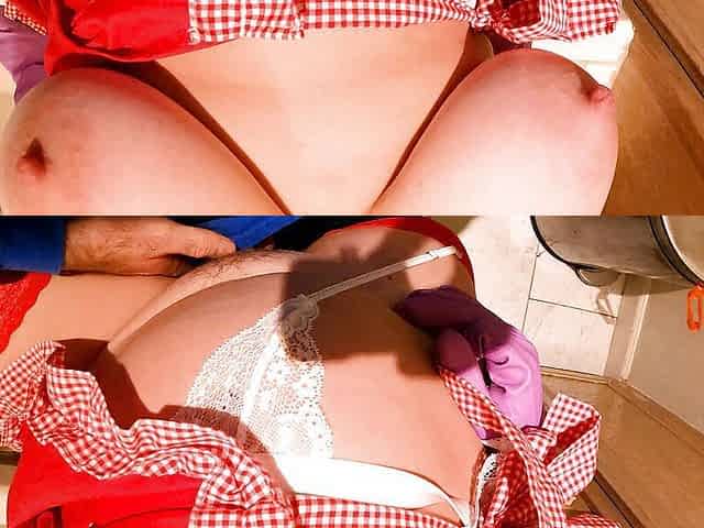 Veronica in an apron helps me rub one out in the kitchen