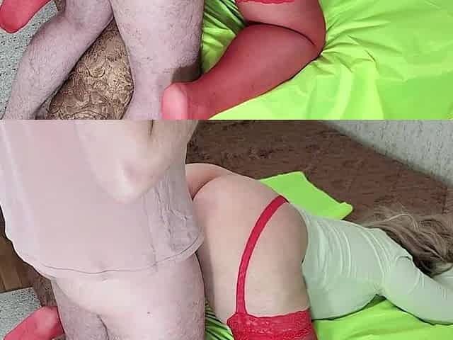 My stepmother's floozy rests semi exposed to tease me, I get lascivious and put my jock in her throat