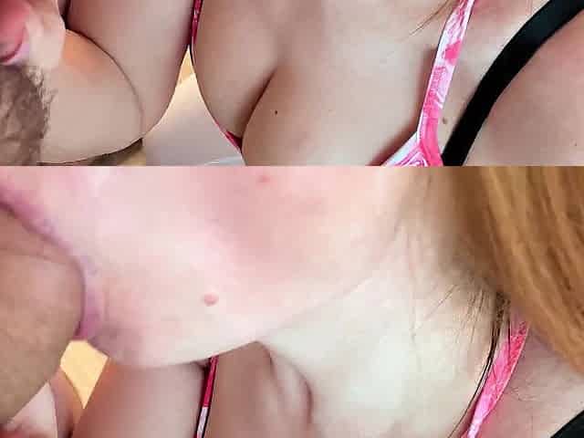 I put my rod in my stepmom's throat and that babe begins sucking. Part two