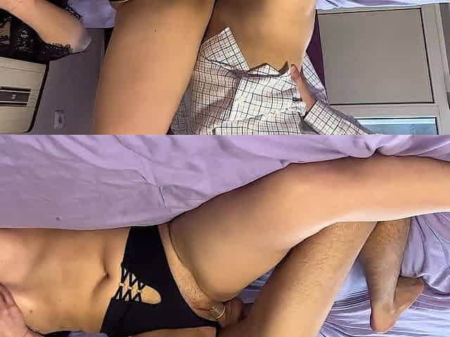 My boyfriend bang my snatch and cums on my abdomen