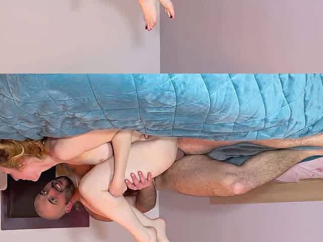 Young girl catches her sister's boyfriend in action under the bunk and gets turned on!