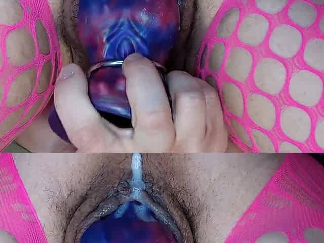 Breeding Session In Pink Nylons. Stretched, Filled with 4 eggs & Birth