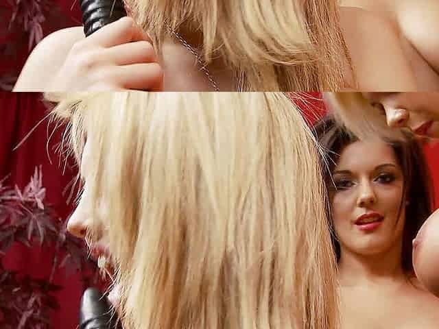 A group of horny lesbians suck and fuck and shove huge toys in their wet cunts