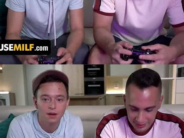 Slutty blonde mom entertains her son's friend with a quickie