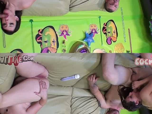"Sexy stepsister and best friend shares stepbrother's huge cock to fuck"
