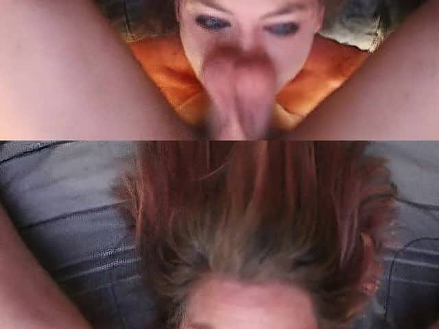 Lusty blone mom is gently sucking a large, hard cock and getting screwed from the back