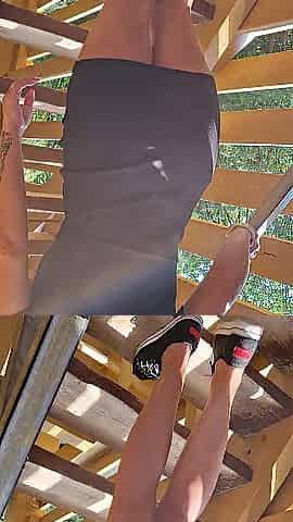 AMAZEMILF CLIMBING STAIRS OUT OF PANTS,SHOWING BALD VAGINA ON A PUBLIC OUTLOOK