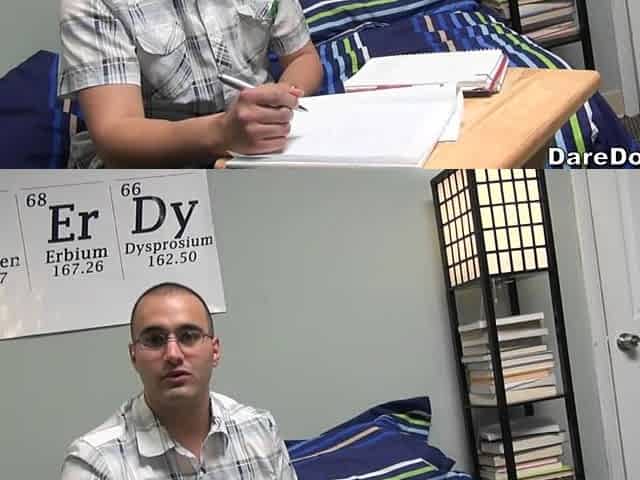College teen brunette gets DP for money in hardcore MMF threesome with pussy creampie