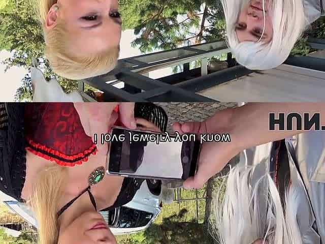 POV outdoors video of shaved pussy Candie Luciani riding for cash