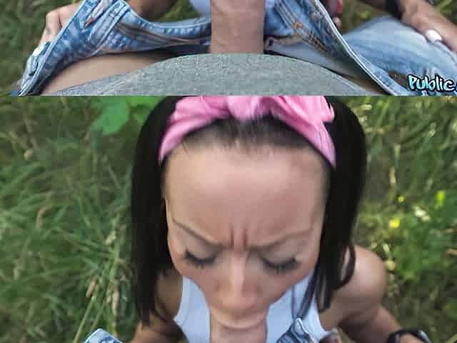Brunette Teen Kattie Gives Blowjob For Cash Outdoors