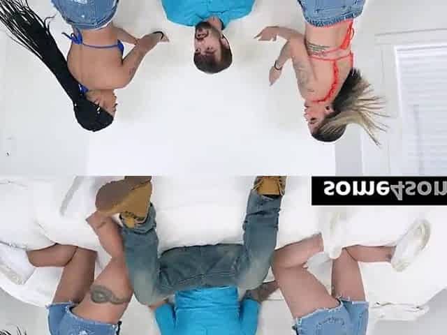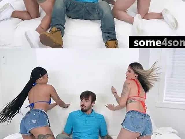 Spanish sex for cash hot dirty lesbian couple threesome on sharing cock in hotel room cumshots threesome