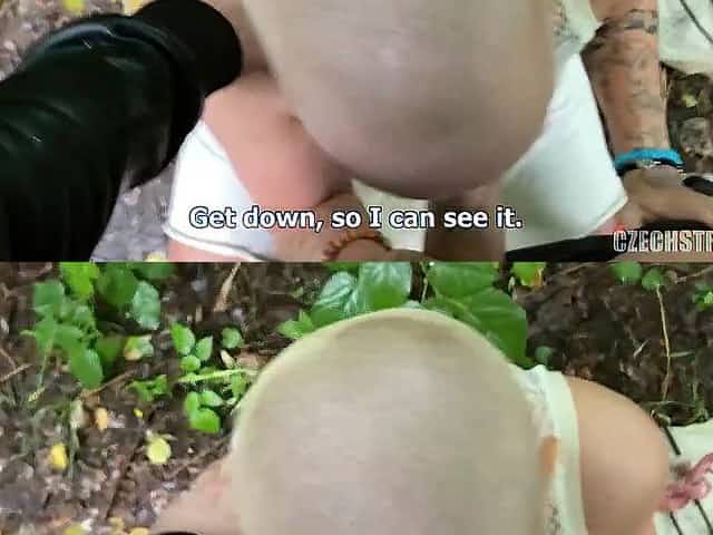Hairless hottie is sucking a random, hard knob for money and getting drilled from the back
