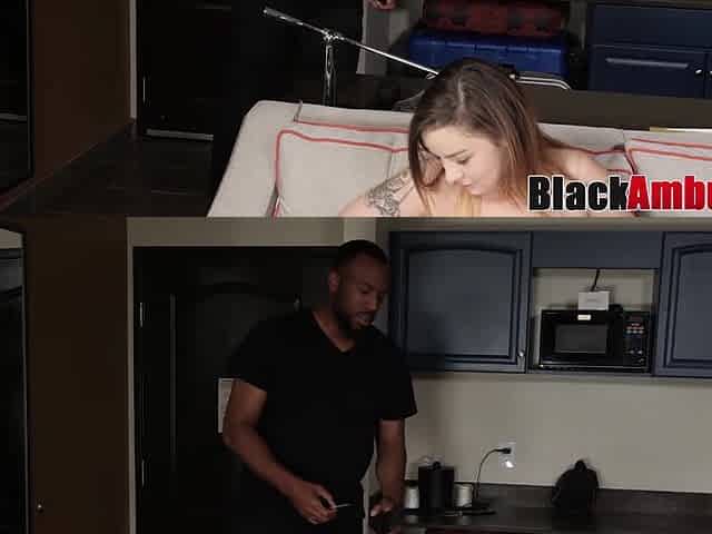 Black guy burying his mega-cock in Katie Morgan's pussy