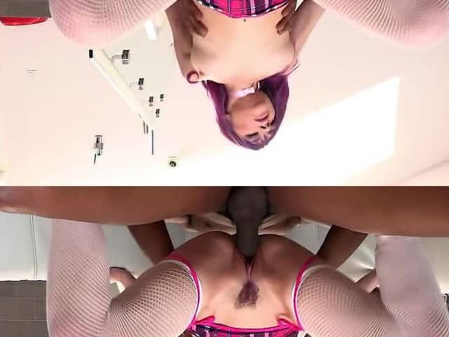 Black bull fucks the white wench with purple hair and eyebrows