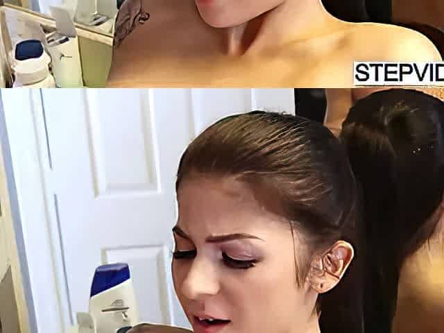 Elsa Jean blowjobs stepbro and gets fuck hard in the bathroom