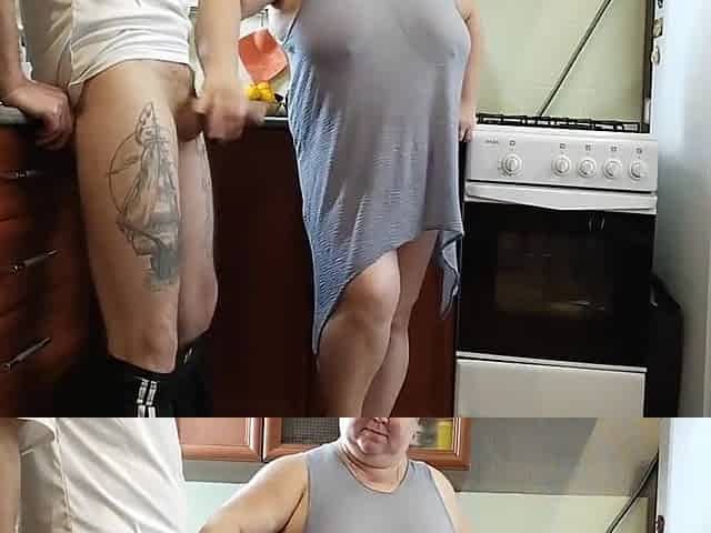 In The Morning In The Kitchen A Fat Woman Masturbates My Dick To A Cumshot