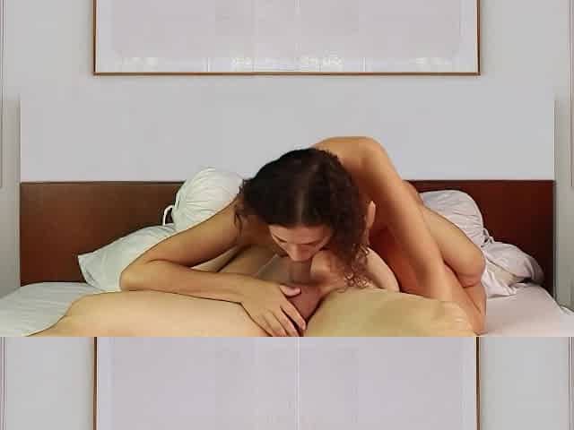 Cute girl sucks her boyfriend's morning wood before riding it