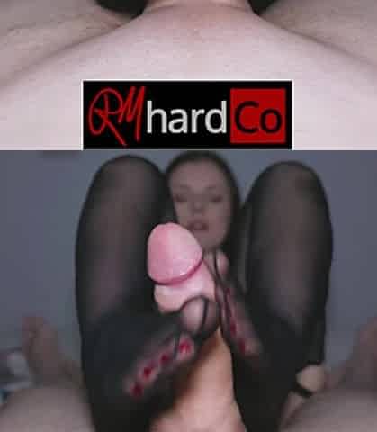 Cute playgirl gives FOOTJOB with ebony HOSE and gets her FEET overspread with CUM