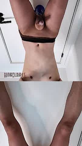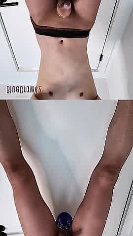 oiled slim femboy anal masturbates using a thick vibrator and cums 7 times in a row