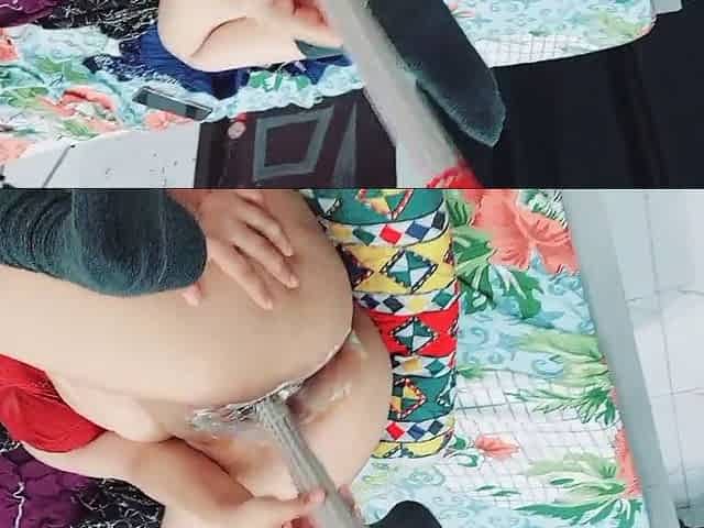 Horny desi maid experiences multiple intense orgasms while pleasuring herself with a broom (phool jhadu), loud moaning included