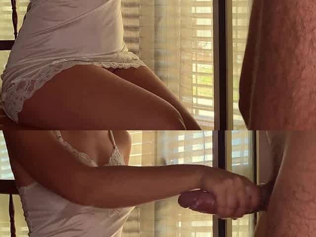Stepmom using his multiple cumshots as a handjob lubricant