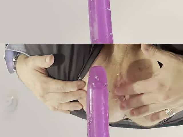 suited males with open crotch is pissing like a dog and rides the vibrator and cums handsfree