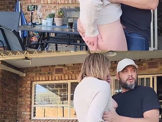 Banging his wife on the patio