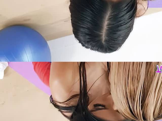 Two awesome chicks River Fox and Xandra Sixx are fucking during the workout session
