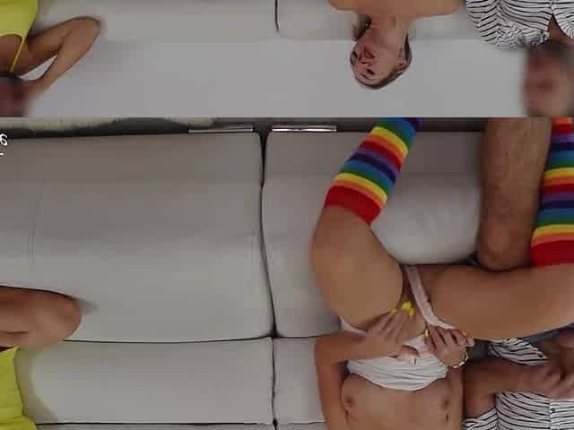 Stepdaughter in lingerie enjoys stepfather during mutual masturbation guidance