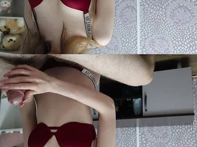 Mutual Masturbation. Pretty Woman Jerks Off A Dick With A Stocking