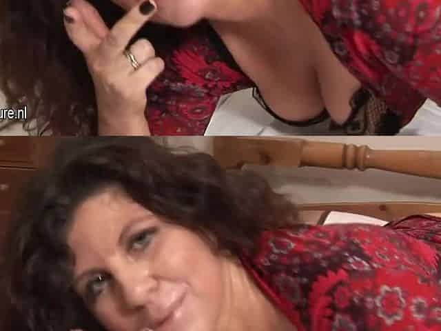 Horny stepmom and kinky brunette chick please one thirsting stud
