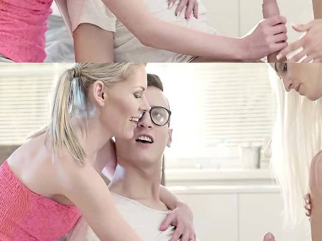 Nasty taboo threesome with cute stepsis and hot stepmom