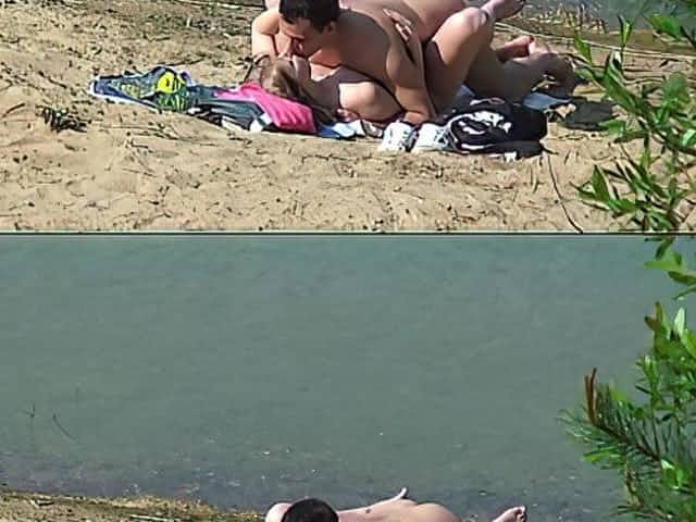 Sexy nudist couple tanning on the beach. Good quality!