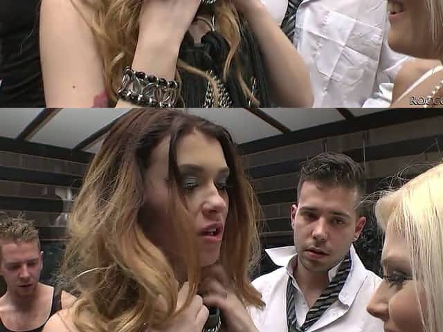 Blond hottie Rachele Richey is fucked by several black dudes at the bar